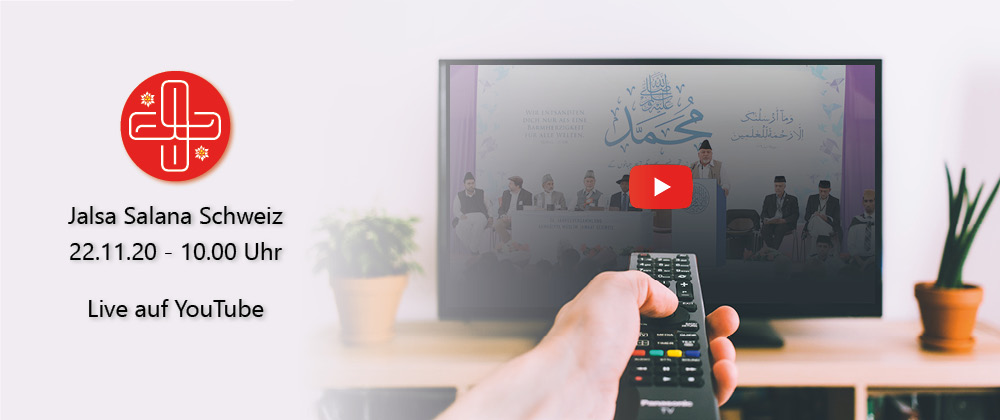 Die 38. Jalsa Salana (jährliche Versammlung der Ahmadiyya Muslim Jamaat Schweiz findet am Sonntag den 22. November 2020 statt. Aufgrund der Situation mit COVID-19 und den Vorgaben der Regierung wird nur eine stark beschränkte Zahl der Personen vorort sein. Die Jalsa Salana wird ab 10:00 Uhr auf YouTube live übertragen.