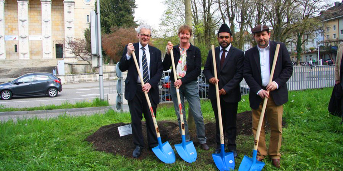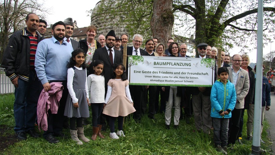Die Ahmadiyya Muslim Jamaat Schweiz pflanzte beim Amtshausplatz in Solothurn einen Friedensbaum als Zeichen der Freundschaft, des Friedens und der Integration. Neben den Stadtpräsidenten Herrn Kurt Fluri nahmen der lokale Imam Abdul Wahab Tayyab, der Präsident der Ahmadiyya Muslim Jamaat Schweiz Walid Tariq Tarnutzer, Kantonratspräsident Urs Huber sowie Vertreter der Landes Kirche an den Anlass teil.