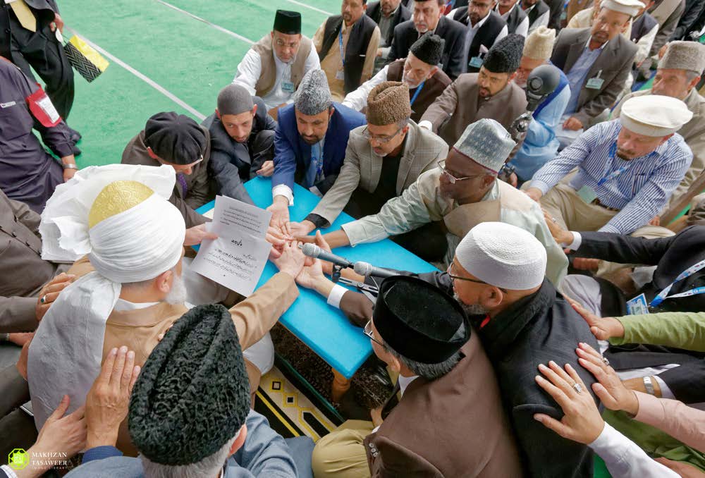 One of the highlights of the three-day Jalsa Salana was the pledge of allegiance, known as Bai’at that took place on Sunday afternoon, where the participants pledged allegiance to Hazrat Mirza Masroor Ahmad as the Fifth Khalifa (Caliph) of the Promised Messiah (peace be upon him).